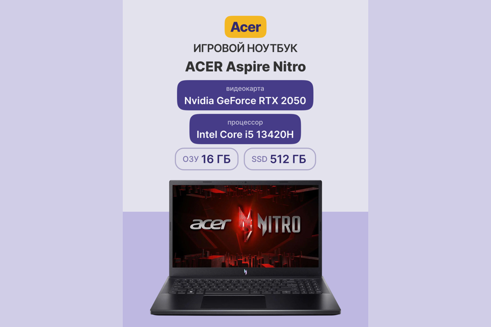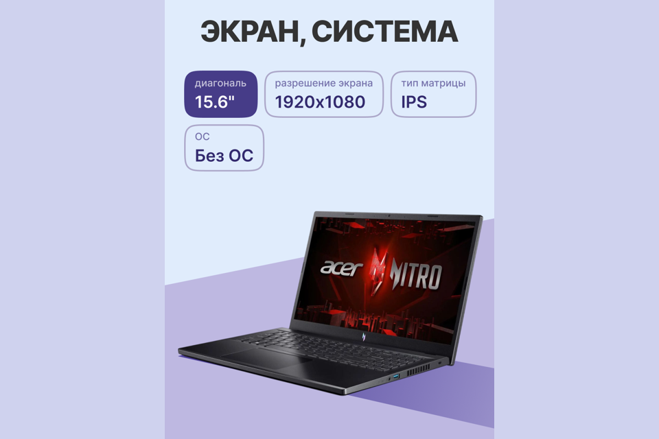 Ноутбук/ ACER Aspire Nitro ANV15-51-51AT 15.6"(1920x1080 (NonGlare) IPS)/Intel Core i5 13420H(2.1Ghz)/16384Mb/512PCISSDGb/noDVD/Ext:nVidia GeForce RTX2050(4096Mb)/Cam/BT/WiFi/50WHr/war 1y/2kg/Black/NoOS