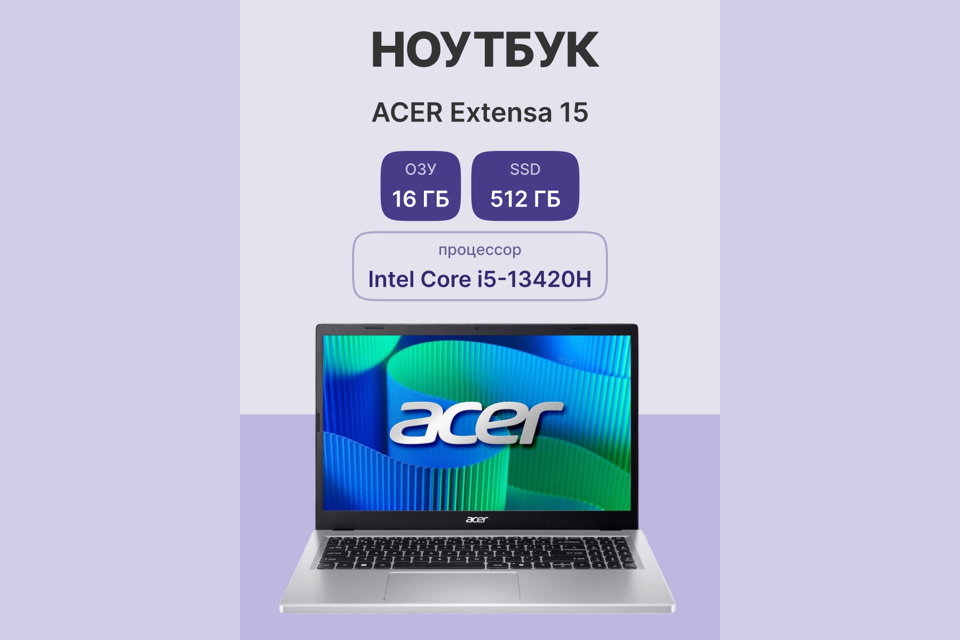 Ноутбук/ ACER Extensa 15 EX215-57-519N 15.6"(1920x1080 (матовый) IPS)/Intel Core i5 13420H(2.1Ghz)/16384Mb/512PCISSDGb/noDVD/Int:Intel HD/Cam/BT/WiFi/50WHr/war 1y/1.8kg/Silver/NoOS