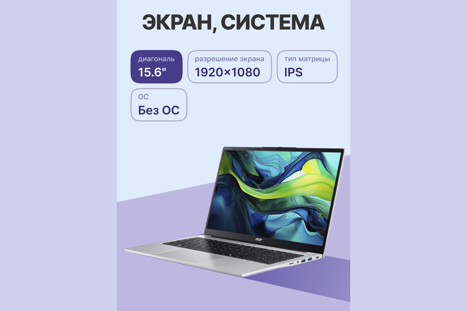 Экран (подробно) | 15.6", FHD (1920х1080), IPS, 16:9, 60 Гц, 300 кд/м2, покрытие матовое |