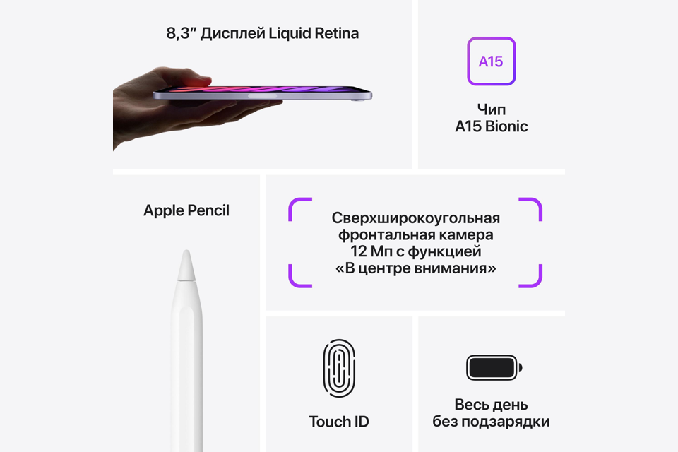 Планшет Apple iPad mini 2021 A2567 A15 Bionic 6С/256Gb 8.3" IPS 2266x1488/iOS/сияющая звезда/BT/12Mp