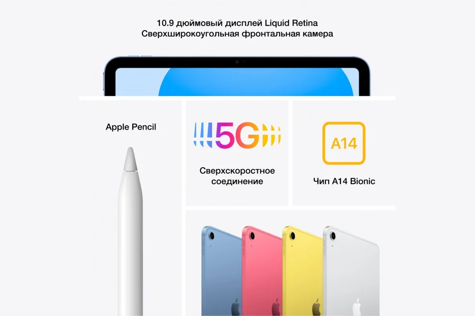 Планшет Apple iPad 2022 A2757 A14 Bionic 6С RAM4Gb ROM64Gb 10.9" IPS 2360x1640 5G 1Sim iOS серебристый 12Mpix 12Mpix BT WiFi 9hr