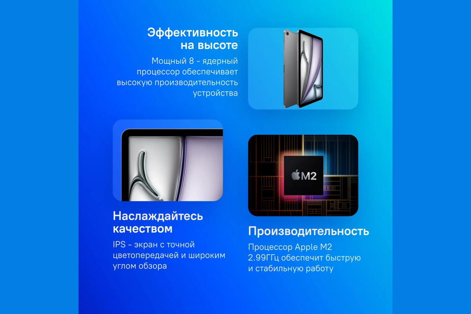 Планшет Apple iPad Air 2024 A2902 M2 2.99 8C RAM8Gb ROM256Gb 11" IPS 2360x1640 iOS серый космос 12Mpix 12Mpix BT WiFi Touch 10hr