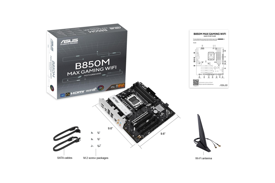 Материнская плата ASUS B850M MAX GAMING WIFI AM5 mATX 4xDDR5 4xPCIEx16 3xM.2 USB-C DP HDMI GLAN Wi-Fi 6