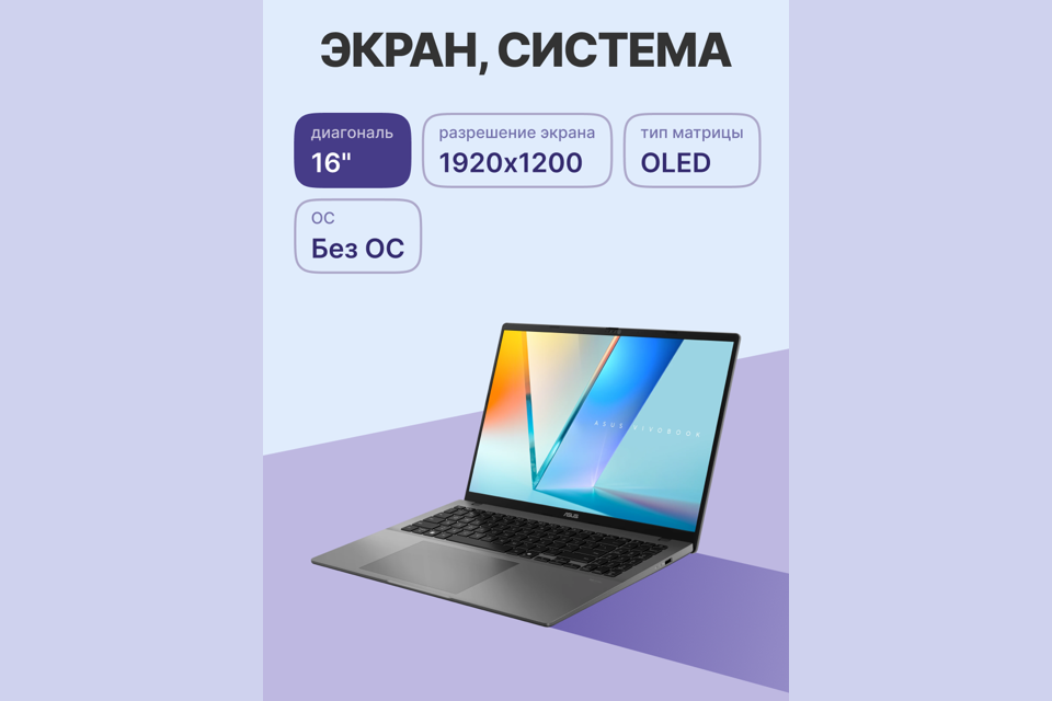 Ноутбук/ ASUS M3607HA-SH190 16"(1920x1200 OLED)/AMD Ryzen 5 220(3.2Ghz)/16384Mb/512PCISSDGb/noDVD/Int:Shared/Cam/BT/WiFi/70WHr/war 1y/1.7kg/Matte Gray/DOS