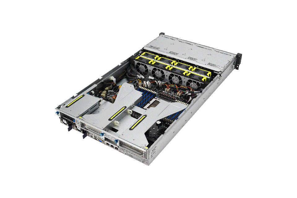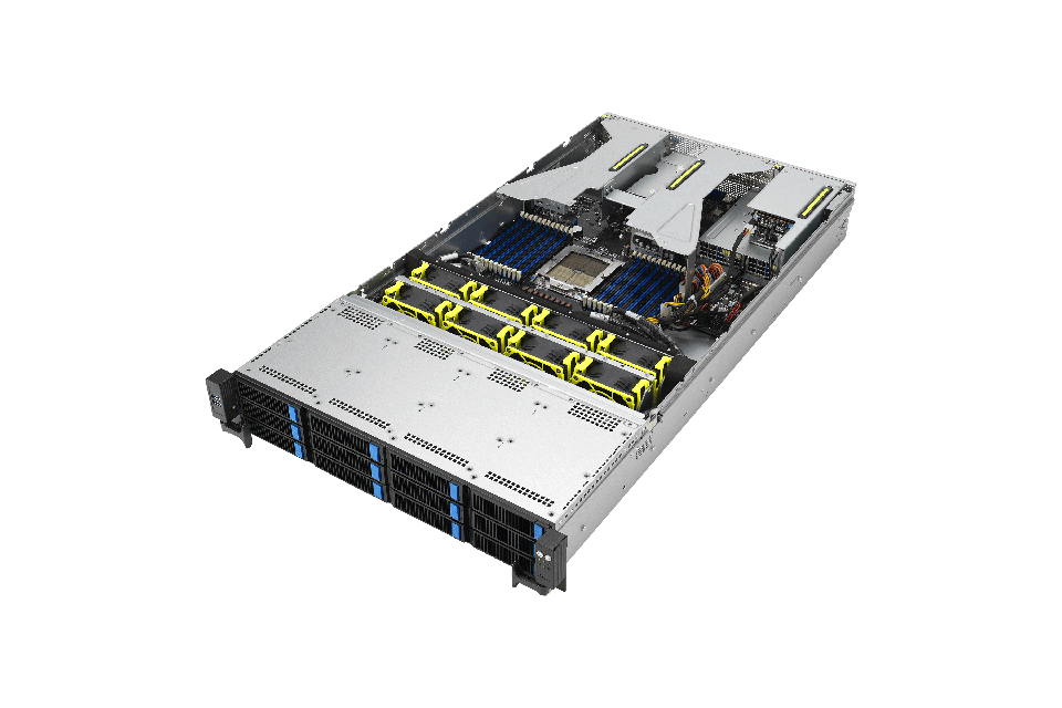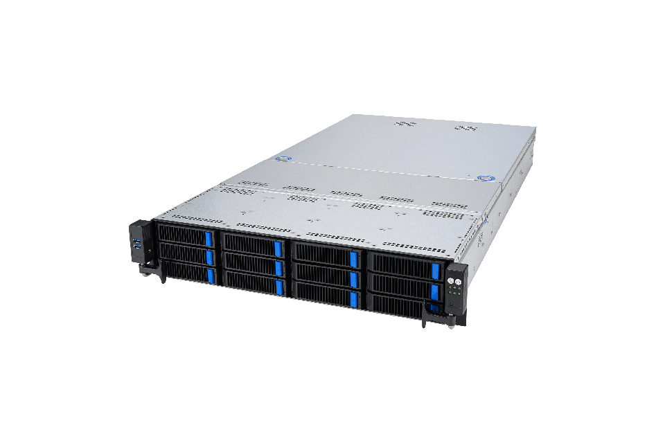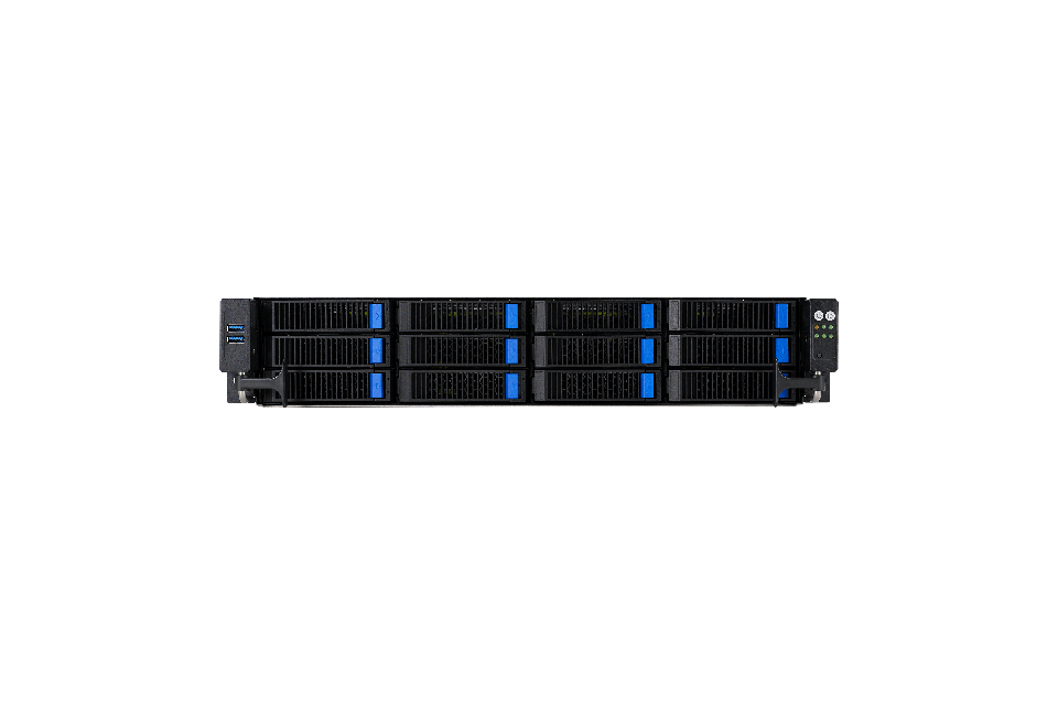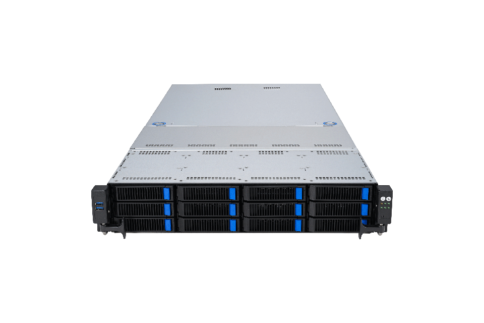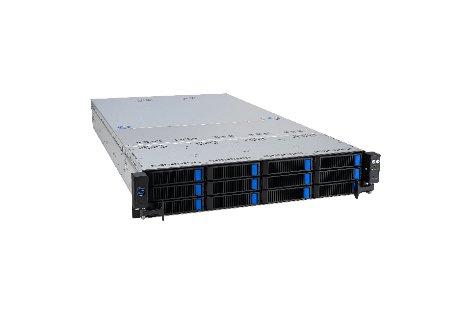 Серверная платформа/ ASUS RS521A-E12-RS12U, 2U, 1 x SP5 (LGA 6096) 4th/5th gen AMD EPYC (STD HS up to 400W), 24 x DIMM slots DDR5 (6400/5600 with 9005 series, 4800 with 9004 series), Up to 5xPCIe Gen5 + 1 OCP3.0, 12 x 3.5" hsb 12NVMe, 2x rear 2.5" SATA hsb, 2x M.2 2280 NVME, 1x 2-Port 1GbE LAN, Up to 4x 1-slot OR 2x 2-slot GPU cards, 1+1 1600W