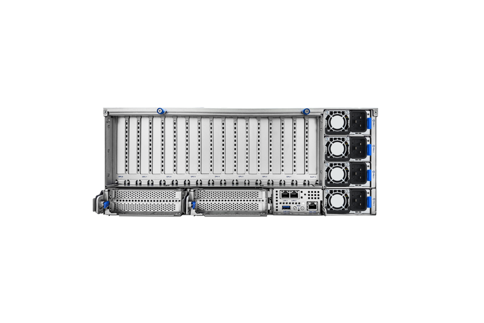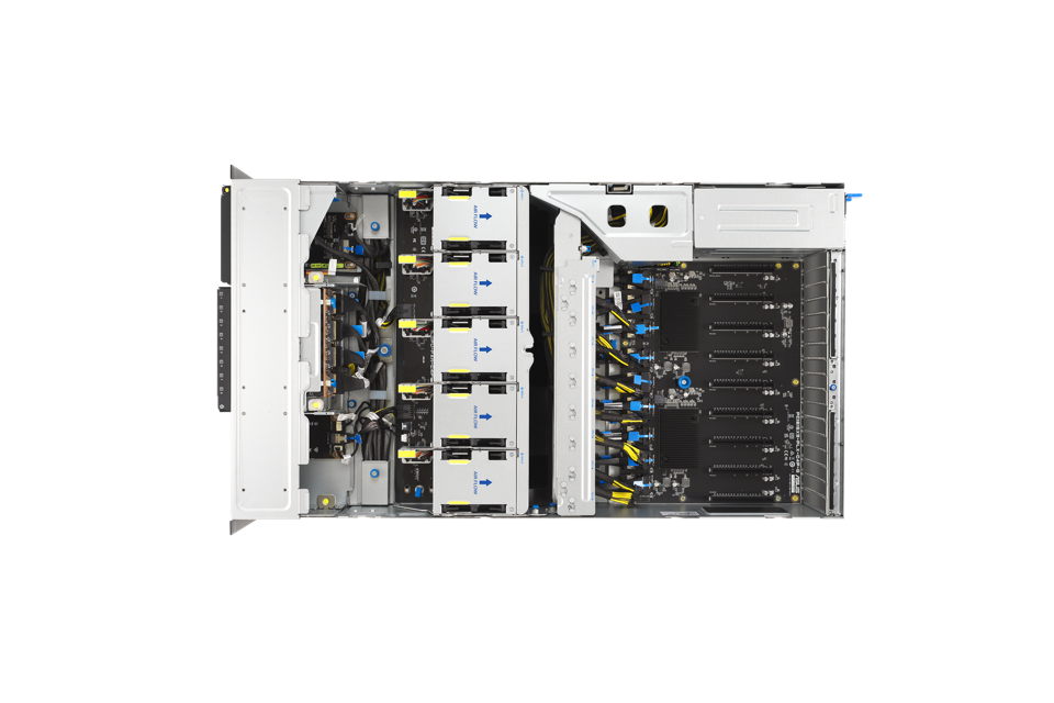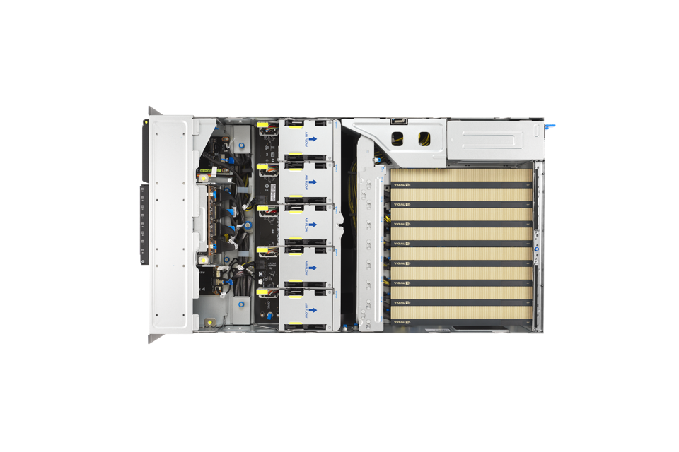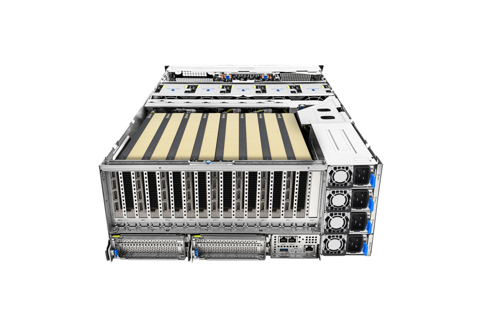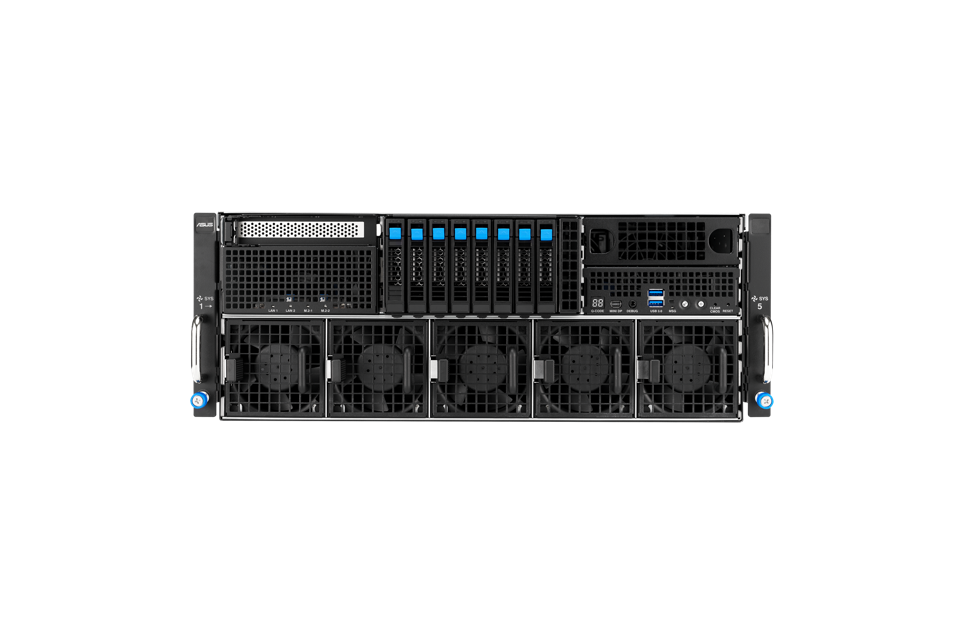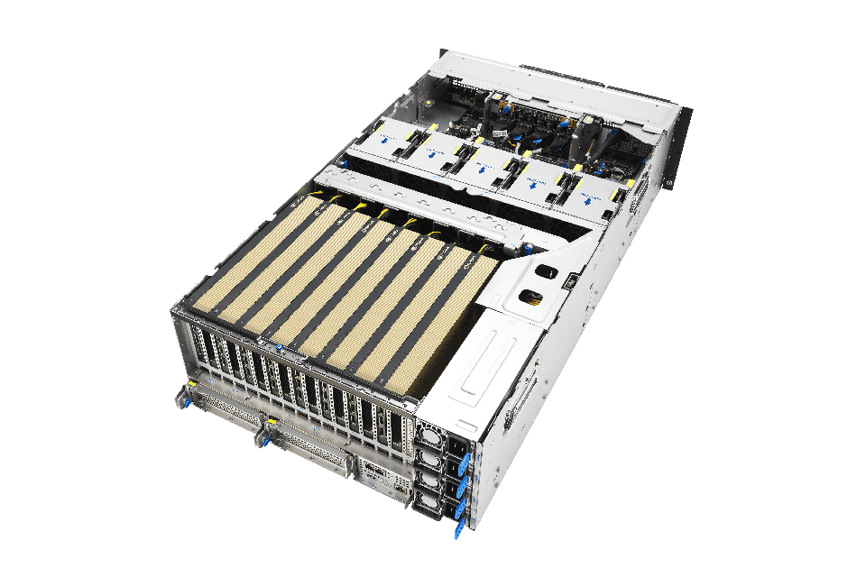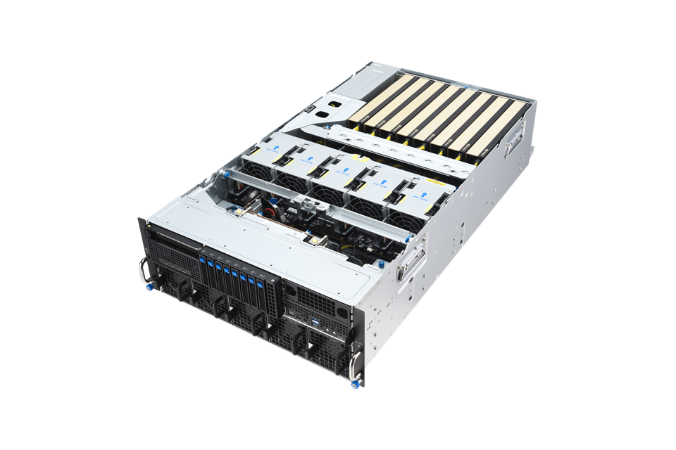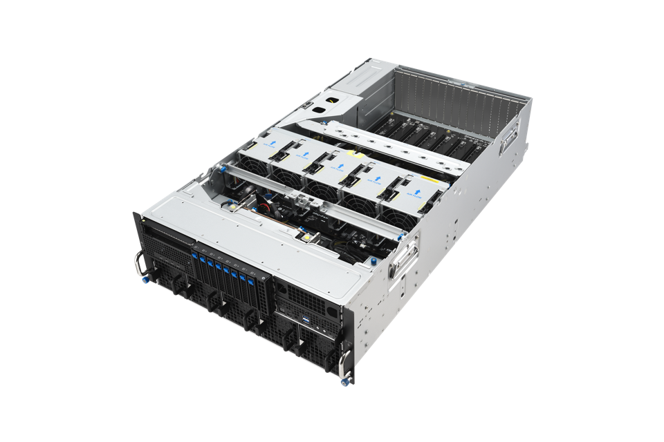 Серверная платформа/ ASUS ESC8000-E12P-SKU1, 4U, 2 x LGA4710 350W, 32x DDR5 6400, 8 x 2.5" hsb NVMe, 2x M.2 (Gen 5 x4 22110), 8x PCIe x16 for dual-slot GPU, 5x PCIe x16 for NIC/ BlueField-3, 1x PCIex 16, 2x 10GbE LAN (RJ45, X710-AT2), 3+1 3200W
