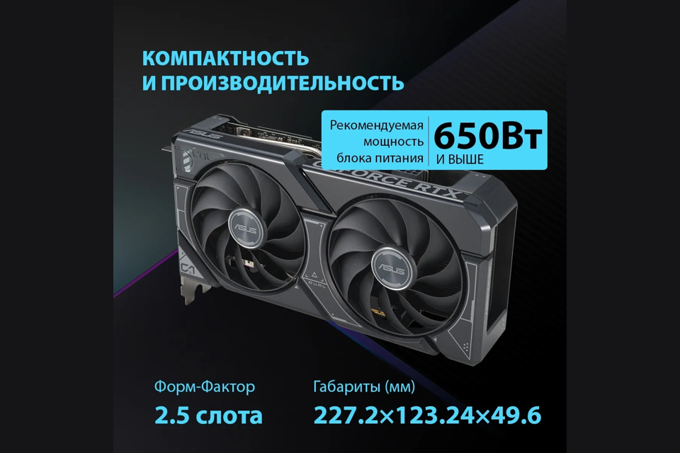 Видеокарта/ 90YV0JH0-M0NA00 VGA ASUS NVIDIA GeForce DUAL-RTX4060TI-O16G 16GB, GDDR6/128-bit, PCIe 4.0, 1xHDMI 2.0, 3xDP, 2.5-slot