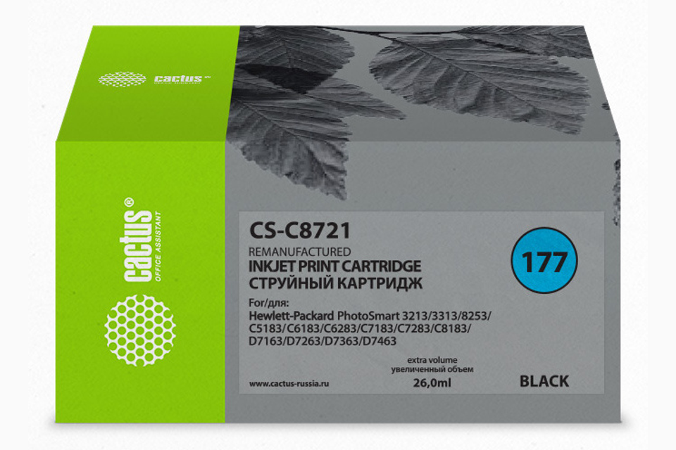 Картридж струйный Cactus CS-C8721 №177 черный (26мл) для HP PS 3213/3313/8253/C5183/C6183/C6283/C7183/C7283/C8183/D7163/D7263/D7363/D7463 с чипом