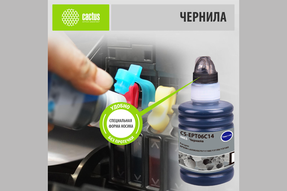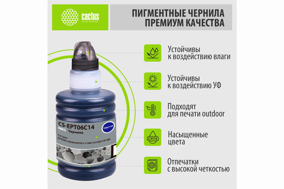 Чернила Cactus CS-EPT06C14 112BK C13T06C14A черный пигментный 140мл для Epson L6550/6570/11160/15150/15160