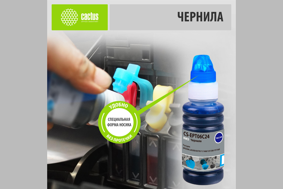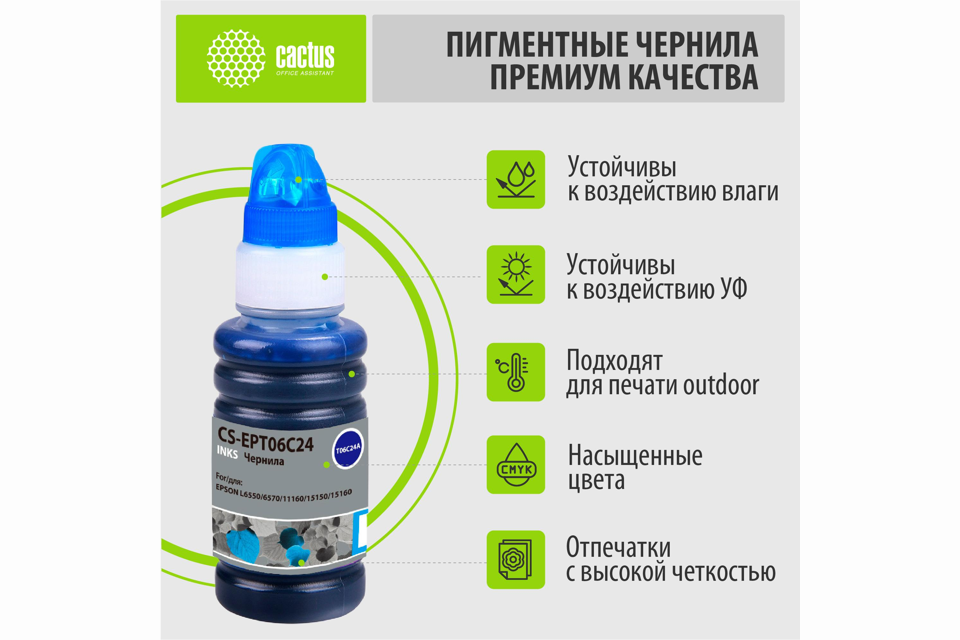 Чернила Cactus CS-EPT06C24 112C C13T06C24A голубой пигментный 70мл для Epson L6550/6570/11160/15150/15160