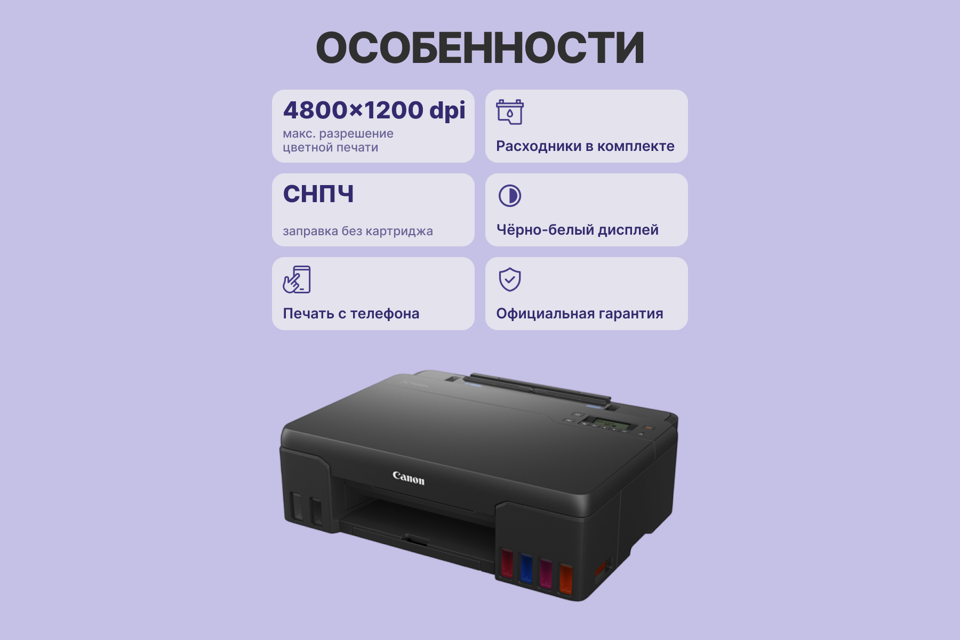 Canon Pixma G540 A4, принтер, лазерный, цветной, 3,9стр/мин, 1200 x 4800dpi, СНПЧ/WiFi/AirPrint/USB (4621C009)
