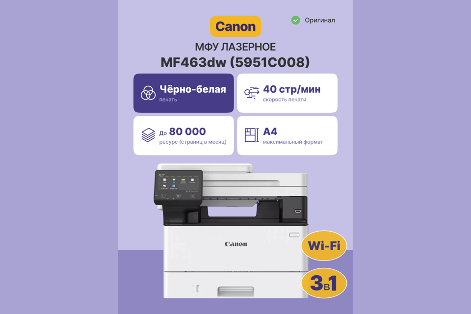 МФУ Canon i-Sensys MF463dw (5951C008)(лазерный, А4, 40стр./мин., 600x600, 1024Мб, Wi-Fi,USB, дуплекс
