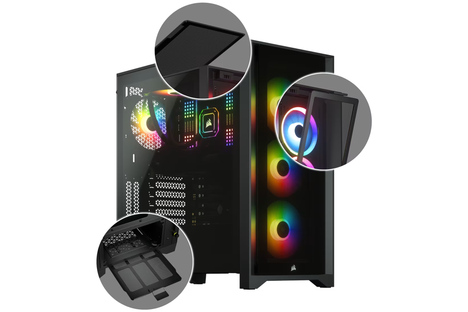 Корпус без блока питания/ Case Corsair iCUE 4000X RGB, Midi-Tower, TG, 3x120mm RGB, 1xUSB-A 3.2, 1xUSB 3.2 Type-C, E-ATX, ATX, mATX, mITX Black