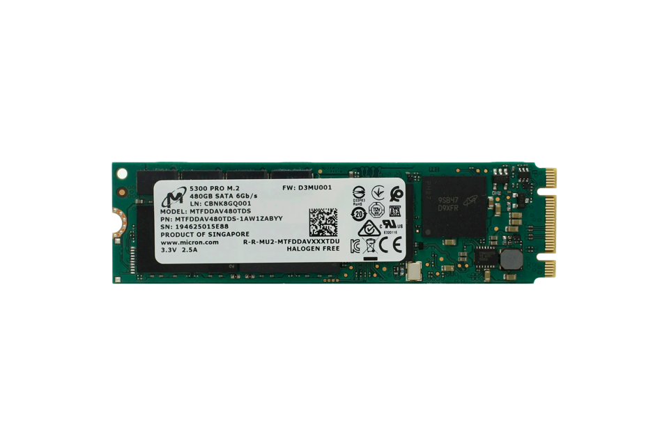 Твердотельный накопитель/ Micron SSD 5300 PRO, 480GB, M.2(22x80mm), SATA3, 3D TLC, R/W 540/410MB/s, IOPs 85 000/36 000, TBW 1324, DWPD 1.5 (12 мес.)