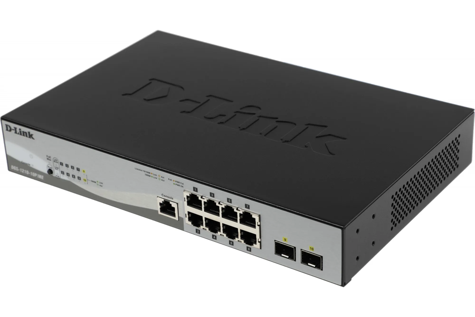 Коммутатор D-Link Управляемый L2 PoE-коммутатор, 8x1000Base-T PoE, 2x1000Base-X SFP, PoE-бюджет 78 Вт, защита от статического электричества до 6 кВ, CLI, консольный порт RJ-45, поддержка Dying Gasp