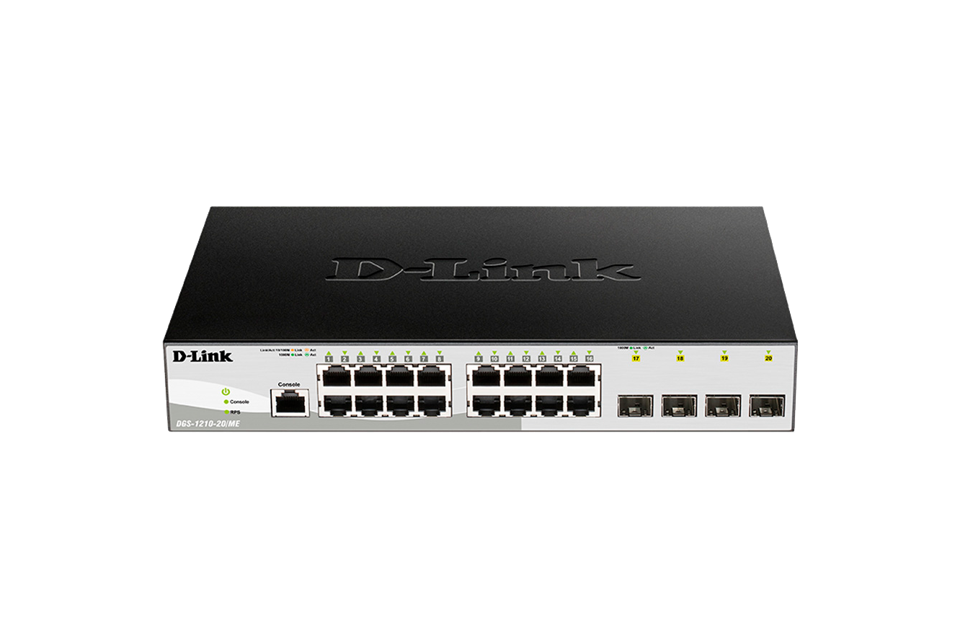 Коммутатор D-Link Управляемый L2 коммутатор, 16x1000Base-T, 4x1000Base-X SFP, защита от статического электричества до 6 кВ, CLI, консольный порт RJ-45, RPS, поддержка Dying Gasp