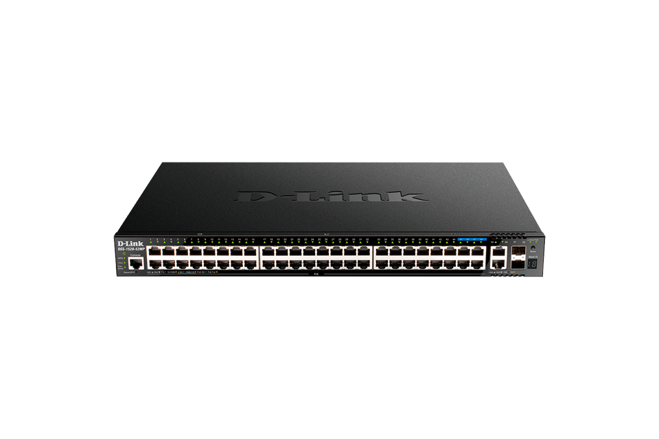 Коммутатор D-Link DGS-1520-52MP/A1A Управляемый L3 стекируемый коммутатор с 44 портами 10/100/1000Base-T, 4 портами «100/1000/2.5GBase-T, 2 портами 10GBase-T и 2 портами 10GBase-X SFP+ (48 портов PoE 802.3af/at, PoE-бюджет 370 Вт