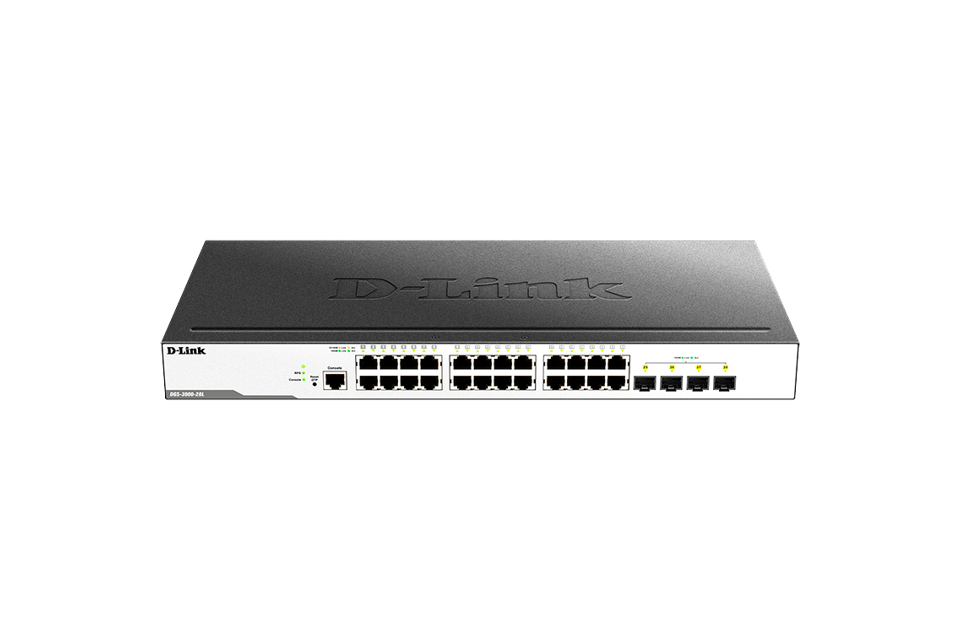Коммутатор D-Link Управляемый L2 коммутатор, 24x1000Base-T, 4x1000Base-X SFP, защита от статического электричества до 6 кВ, CLI, консольный порт RJ-45, RPS, поддержка Dying Gasp