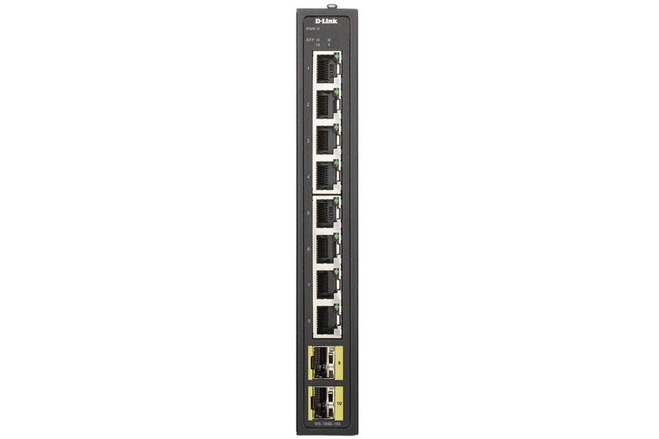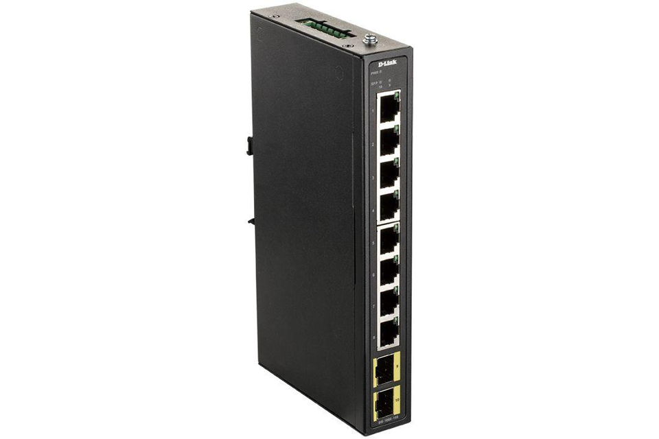 Коммутатор D-Link Промышленный неуправляемый коммутатор, 8x1000Base-T, 2x1000Base-X SFP, защита от статического электричества до 6 кВ, релейный выход для оповещения о сбое питания, -20..65°C, корпус металл IP40,