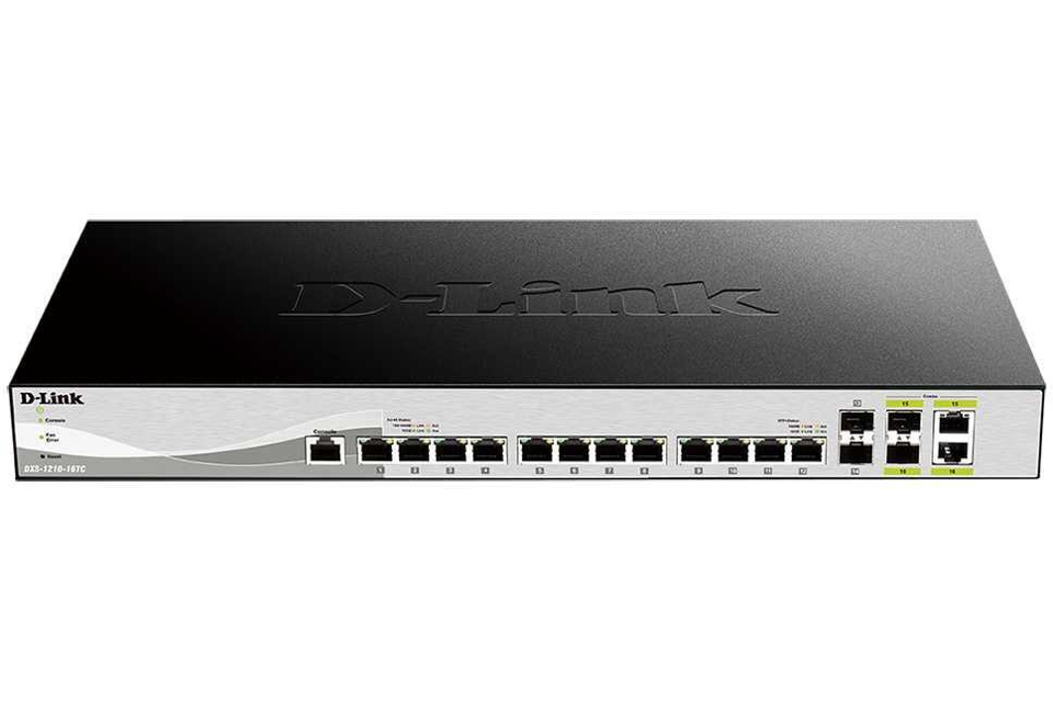Коммутатор D-Link DXS-1210-16TC/B1A Настраиваемый L2+ коммутатор с 12 портами 10GBase-T, 2 портами 10GBase-X SFP+ и 2 комбо-портами 10GBase-T/SFP+