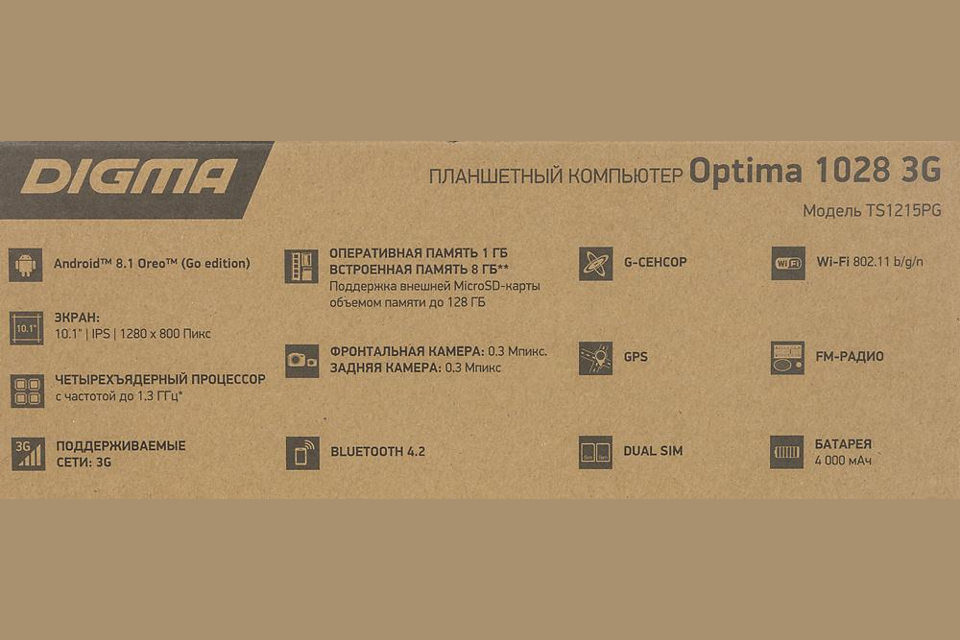 Планшет Digma Optima 1028 3G SC7731E (1.3) 4C RAM1Gb ROM8Gb 10.1" IPS 1280x800 2Sim Android 8.1 черный 0.3Mpix 0.3Mpix BT GPS WiFi Touch microSD 64Gb minUSB 4000mAh