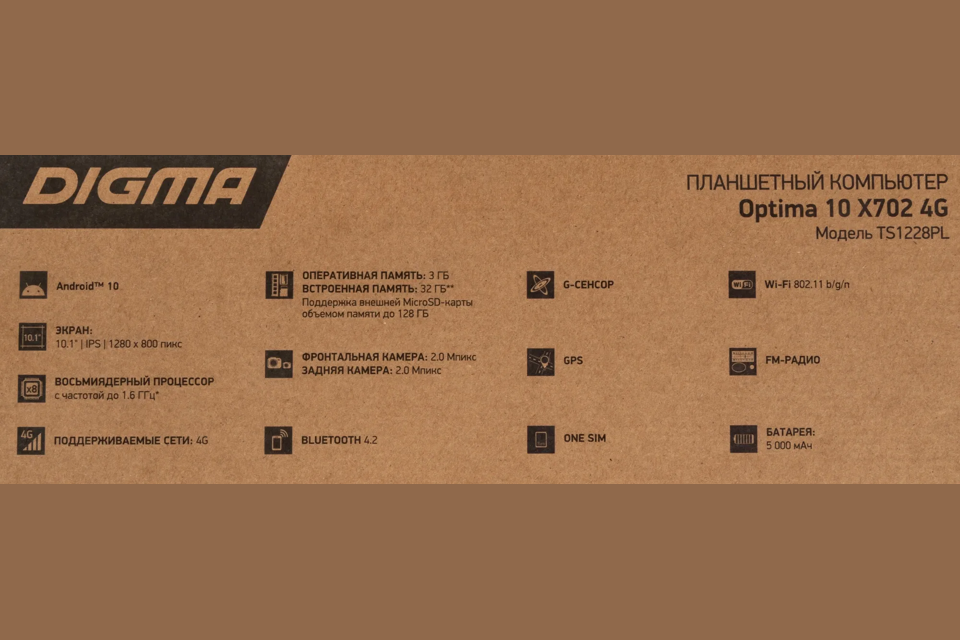 Планшет Digma Optima 10 X702 4G SC9863 (1.6) 8C RAM3Gb ROM32Gb 10.1" IPS 1280x800 LTE 1Sim Android 10.0 черный 2Mpix 2Mpix BT GPS WiFi Touch microSD 128Gb 5000mAh