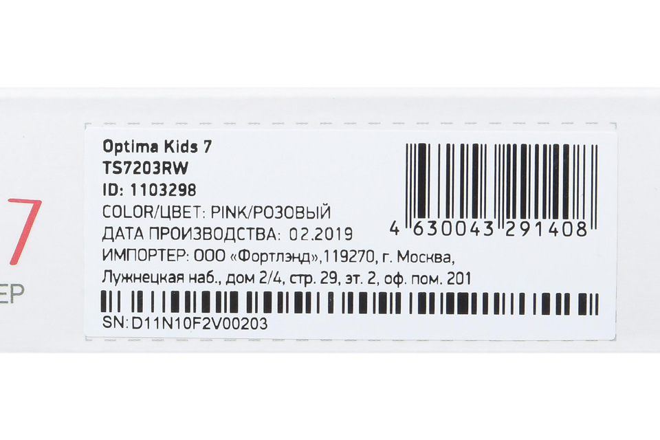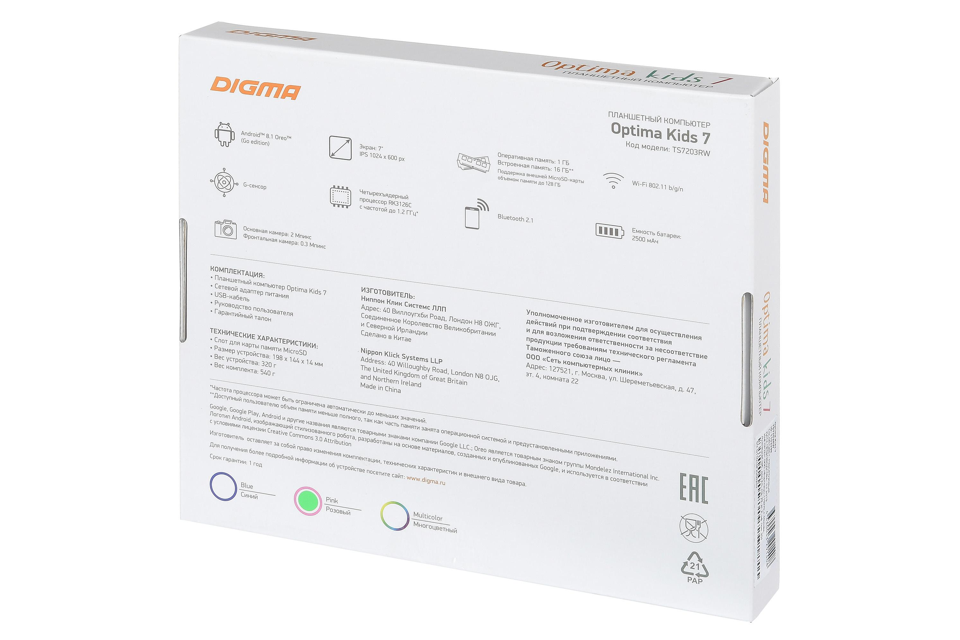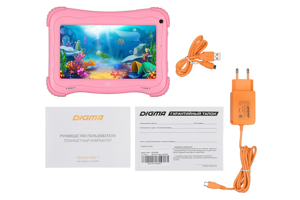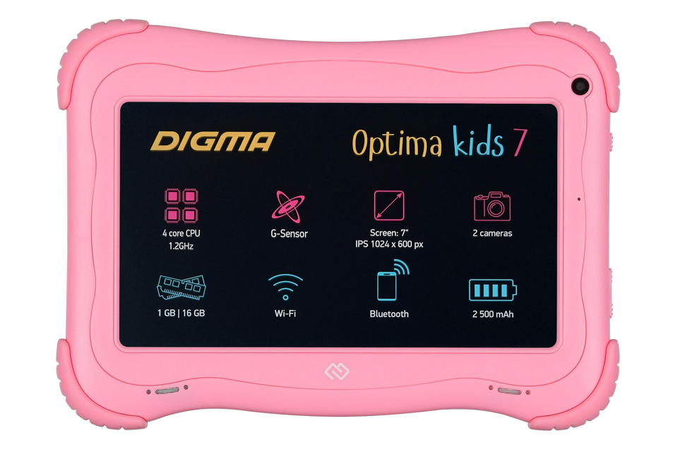 Планшет Digma Optima Kids 7 RK3126C (1.2) 4C RAM1Gb ROM16Gb 7" IPS 1024x600 Android 8.1 розовый 2Mpix 0.3Mpix BT WiFi Touch microSD 128Gb minUSB 2500mAh