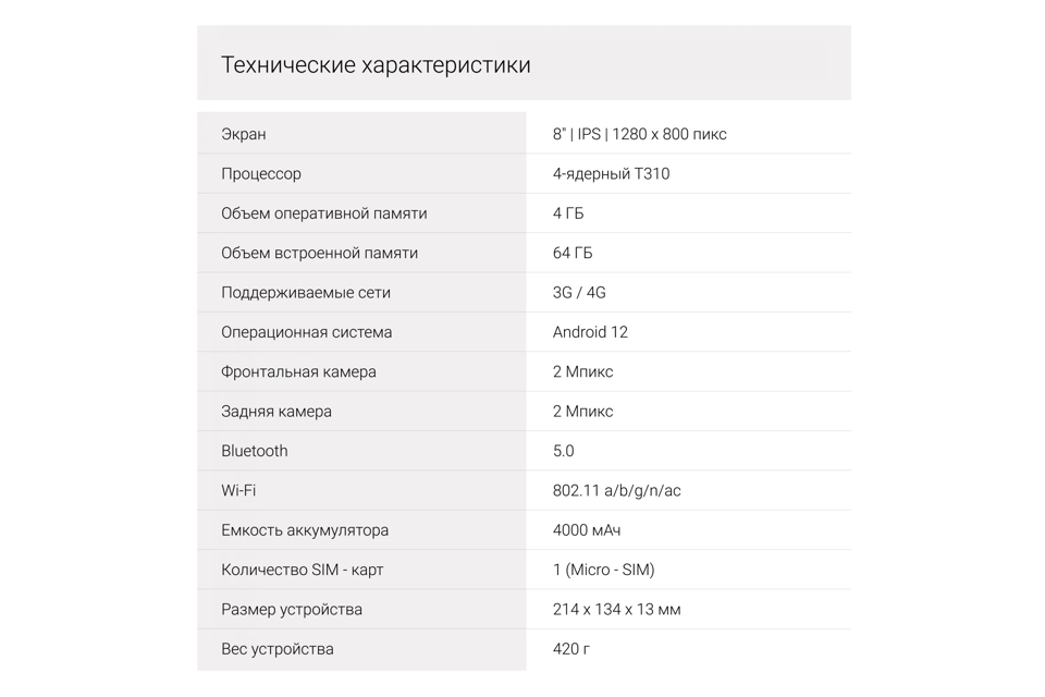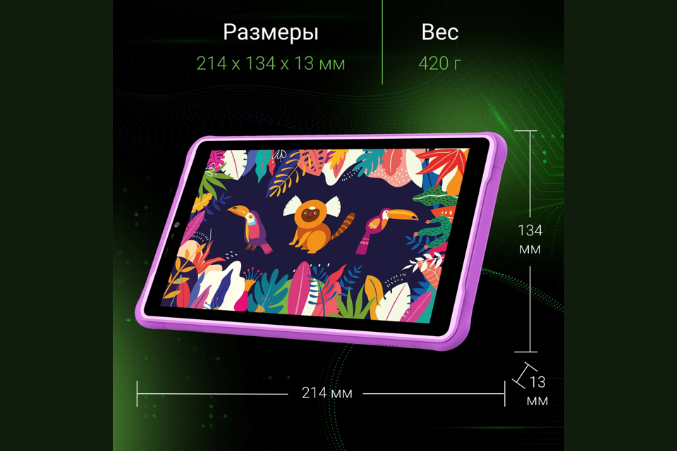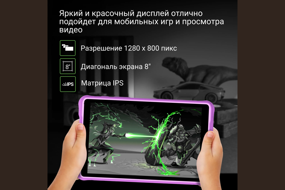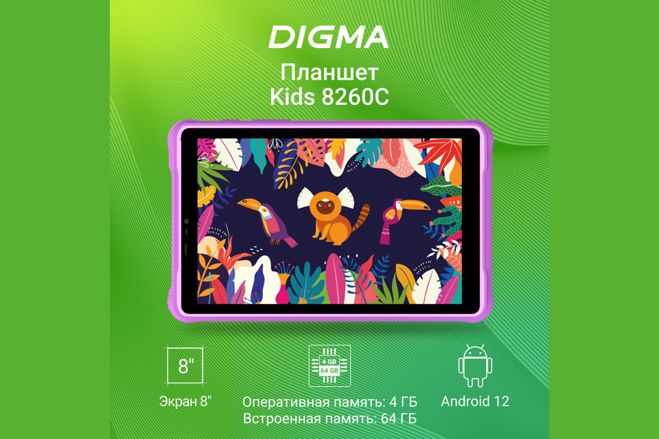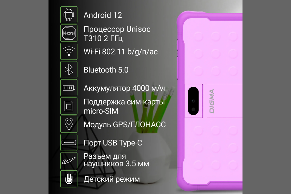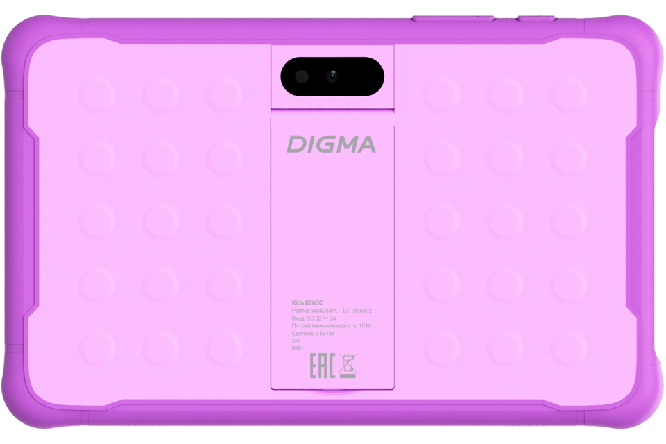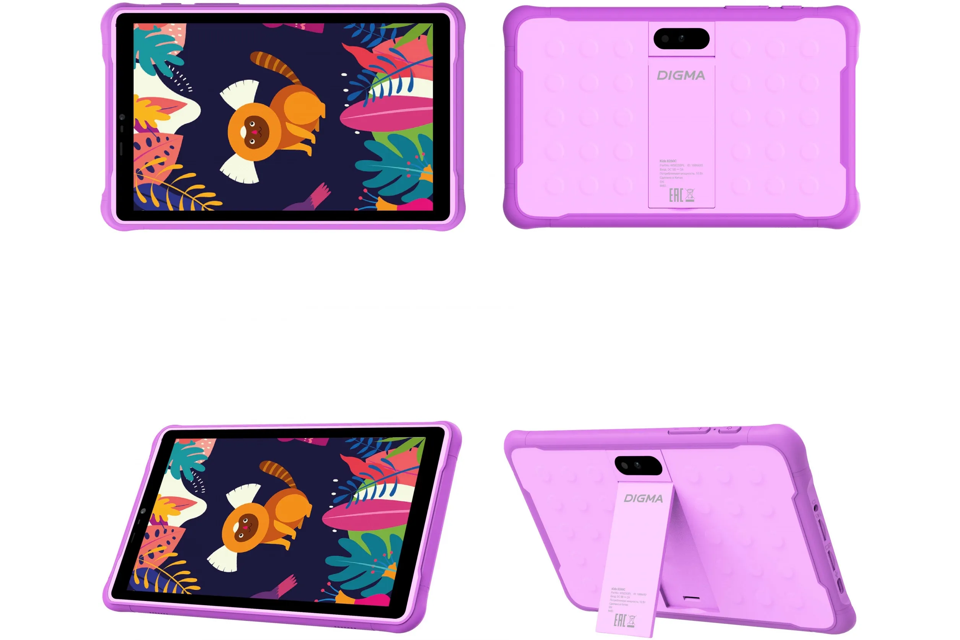 Планшет Digma Kids 8260C T310 (2.0) 4C RAM4Gb ROM64Gb 8" IPS 1280x800 LTE 1Sim Android 12 фиолетовый 2Mpix 2Mpix BT GPS WiFi Touch microSD 128Gb 4000mAh