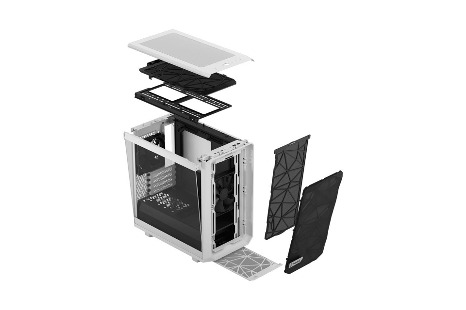 Корпус ПК без блока питания/ Case Fractal Design Meshify 2 Mini TG Clear Tint, Mini-Tower, 1x120mm + 1x140mm, 2xUSB-A 3.2 + 1xUSB 3.2 Type-C mATX, mITX, mDTX White