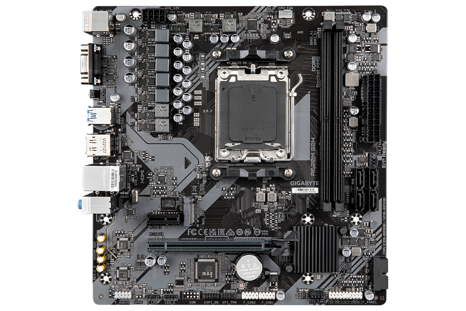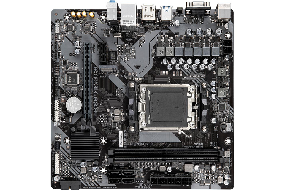 Материнская плата Gigabyte A620M S2H, Socket AM5, AMD A620, 2xDDR5-5200, D-SUB+HDMI+DP, 1xPCI-Ex16, 1xPCI-Ex1, 4xSATA3(RAID 0/1/10), 1xM.2, 8 Ch Audio, GLan, (4+4)xUSB2.0, (2+2)xUSB3.2, 1xPS/2, mATX, RTL