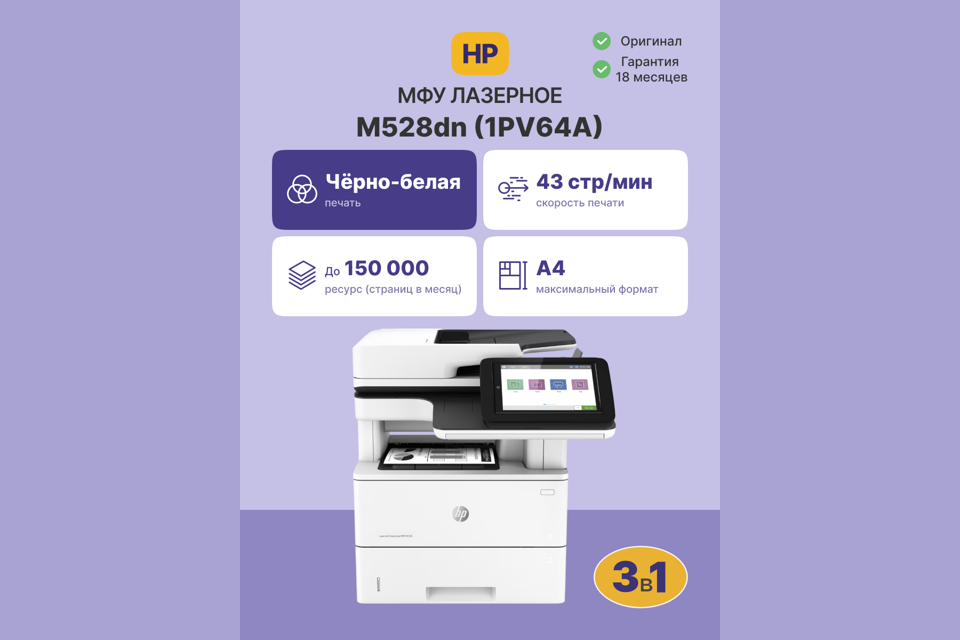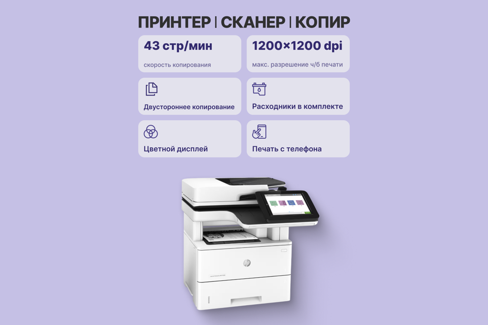 МФУ, стартовый картридж (7500 страниц), документация), кабель питания
