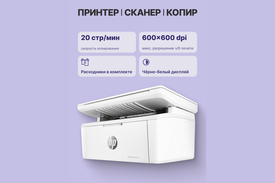 HP LaserJet M141a А4, МФУ, лазерное, черно-белое, 20стр/мин, 600dpi, 500МГц, 64Мб, нет АПД, Ethernet/USB (7MD73A)