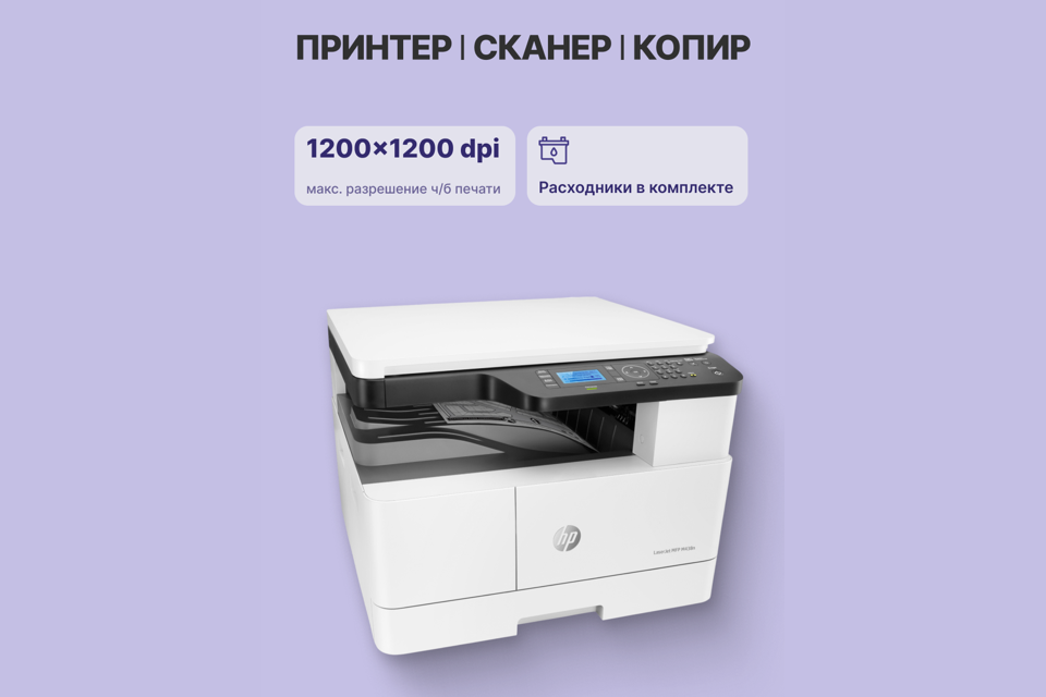 МФУ, комплект документации, черный картридж, кабель питания, кабель USB