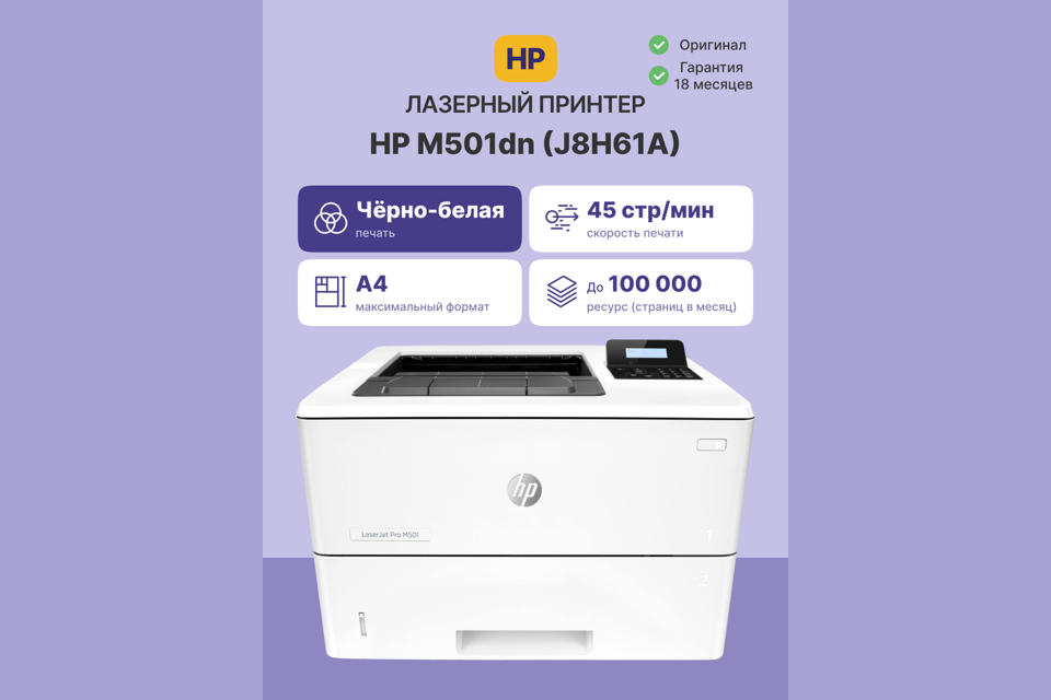 Ссылка на описание | https://www.hp.com/us-en/shop/pdp/hp-laserjet-pro-m501dn |