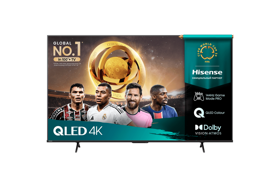 Телевизор ЖК 55'' Hisense/ 55", QLED, Ultra HD, 144 Hz(VRR), Smart TV (ОС VIDAA U8.5), Wi-Fi, DVB-T2/T/C/S2/S, FreeSync Premium, 2.0Ch 2х10W, CI+(1.4), 3хHDMI, 2хUSB, Alexa Built-in, VIDAA Voice, Black 2025