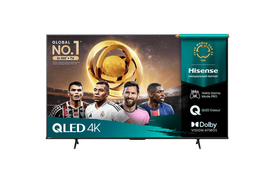 Телевизор ЖК 65'' Hisense/ 65", QLED, Ultra HD, 144 Hz(VRR), Smart TV (ОС VIDAA U9), Wi-Fi, DVB-T2/T/C/S2/S, FreeSync Premium, 2.0Ch 2х10W, CI+(1.4), 4хHDMI, 2хUSB, Alexa Built-in, VIDAA Voice, Black 2025