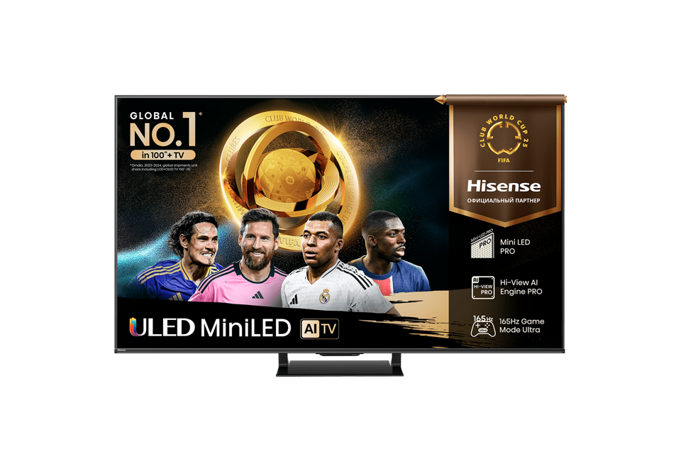 Телевизор ЖК 65'' Hisense/ 65", Ultra HD, Mini LED, Local Dimming Zones 560, 165 Hz(VRR), Smart TV (ОС VIDAA U9), Wi-Fi, DVB-T2/T/C/S2/S, HDR 10+, Dolby Vision, Dolby Atmos, Bluetooth, 2.1.2ch 2*10W(Main)+20W(Subwoofer)+2*5W(Side), CI+(1.4), 4хHDMI, 2хUSB, Works with Alexa, Alexa Built-in, GA, VIDAA Voice, Yandex, FreeSync Premium Pro, 144Hz Game Mode Pro, Black, 2025
