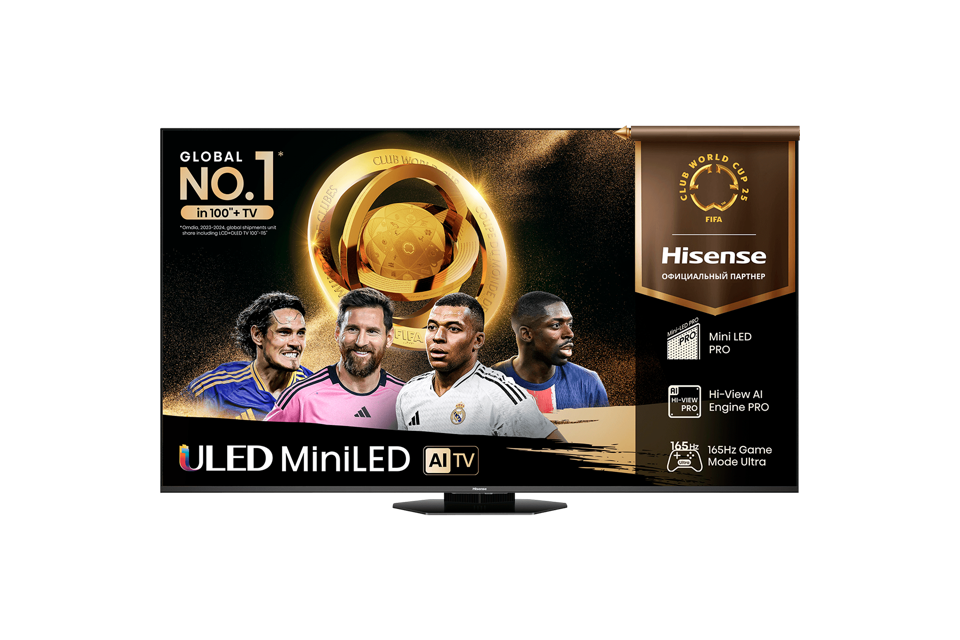 Телевизор Mini LED 65'' Hisense/ 65", Ultra HD, Mini LED, Local Dimming Zones 2048, 48-165Hz, Smart TV (ОС VIDAA U9), Wi-Fi 6E, DVB-T2/T/C/S2/S, HDR 10+, Dolby Vision, Dolby Atmos, Bluetooth, FreeSync Premium Pro, 4.1.2 ch 2*15W(Main)+2*10W(Side)+20W(Subwoofer)+2*10W(Upper), CI+(1.4), 3хHDMI, 2хUSB, DP(Type-C), Charcoal grey, 2025