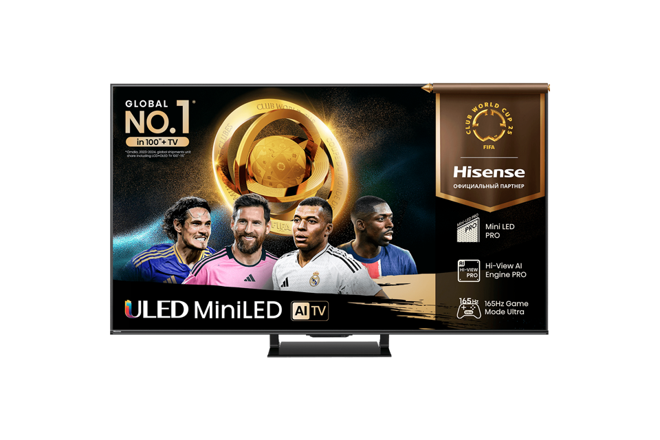 Телевизор ЖК 75'' Hisense/ 75", Ultra HD, Mini LED, Local Dimming Zones 640, 165 Hz(VRR), Smart TV (ОС VIDAA U9), Wi-Fi, DVB-T2/T/C/S2/S, HDR 10+, Dolby Vision, Dolby Atmos, Bluetooth, 2.1.2ch 2*10W(Main)+20W(Subwoofer)+2*5W(Side), CI+(1.4), 4хHDMI, 2хUSB, Works with Alexa, Alexa Built-in, GA, VIDAA Voice, Yandex, FreeSync Premium Pro, 144Hz Game Mode Pro, Black, 2025