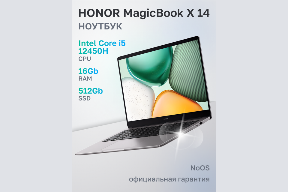 Ноутбук Honor MagicBook X14 GDG-X Core i5 12450H 16Gb SSD512Gb Intel UHD Graphics 14" IPS FHD+ (1920x1200) Free DOS grey WiFi BT Cam (5301ALWW)