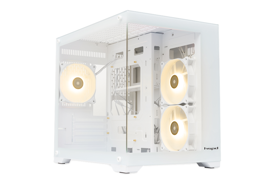 Корпус без блока питания/ Case HSPD F330, Panoramic Mini-tower, White, TG, 0.5 SPCC, 3x120mm ARGB (FN027) mATX, mITX 160/400/200mm 1x2.5", 2x3.5", 4xPCI 1xUSB-C 3.0, 2xUSB-A1.0 428x280x375mm