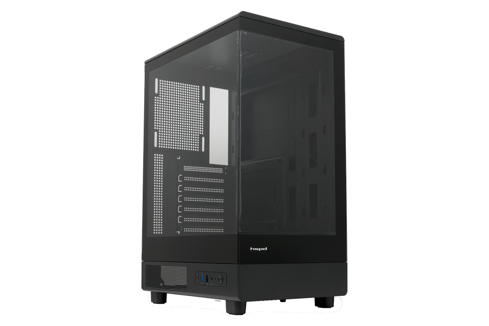 Корпус без блока питания/ Case HSPD F510, Panoramic Mid Tower, Black, TG, 0.5 SPCC, no fans ATX, mATX, mITX 180/280/160mm 1x2.5", 1x3.5", 7xPCI 1xUSB-A 3.0, 1xUSB-A 1.0 356x218x467mm