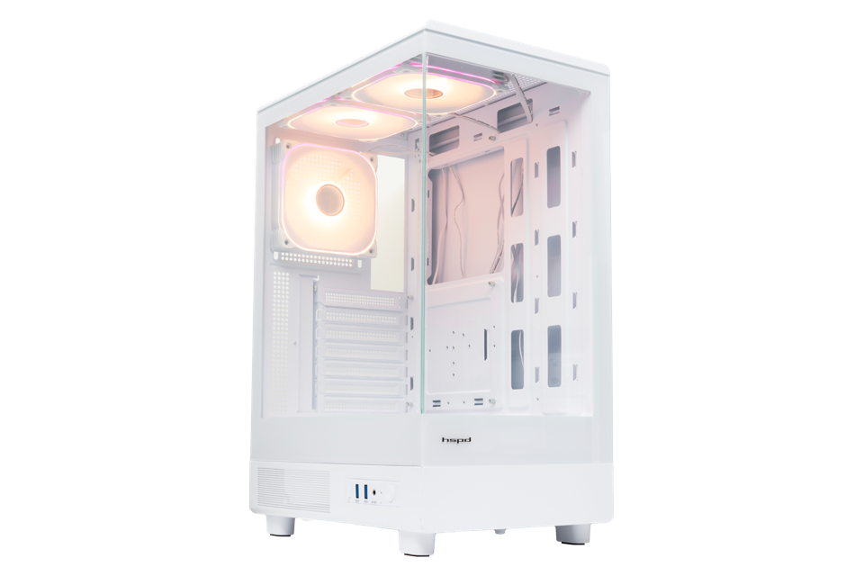 Корпус без блока питания/ Case HSPD F510, Panoramic Mid Tower, White, TG, 0.5 SPCC, 3x120mm ARGB (FNW010) ATX, mATX, mITX 180/280/160mm 1x2.5", 1x3.5", 7xPCI 2xUSB-A 3.0 356x218x467mm