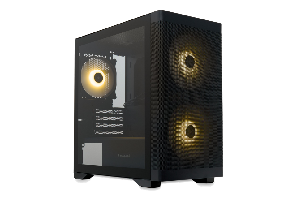 Корпус без блока питания/ Case HSPD M320, Mesh Mini-tower, Black, slide TG, 0.45 SPCC, 2x140mm ARGB (M11-140)+1x120mm ARGB (M11-120) mATX, mITX 160/340/184mm 2x2.5", 2x3.5", 4xPCI 2xUSB-A 3.0, 1xUSB-A 1.0 390x200x385mm