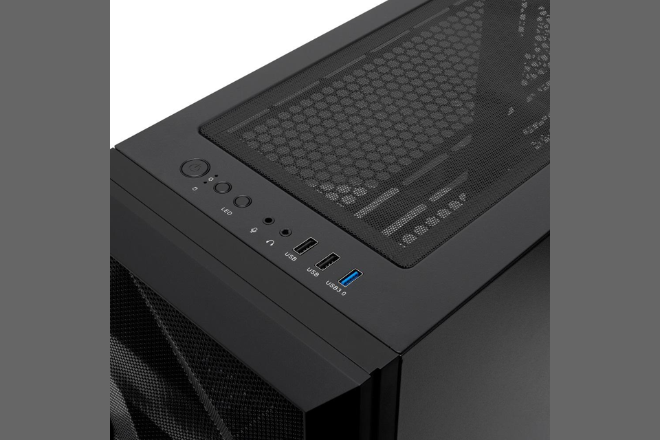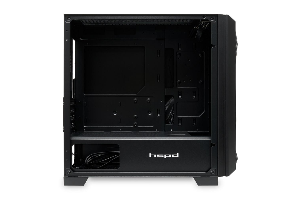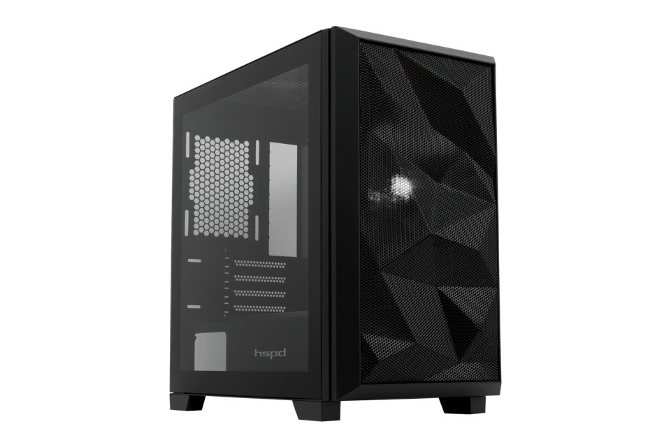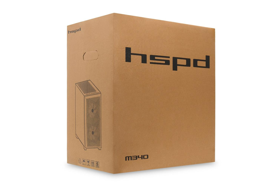 Корпус без блока питания/ Case HSPD M340, Mesh Mid Tower, Black, TG, 0.5 SPCC, no fans, mATX, mITX, 165/350/200mm, 2x2.5", 2x3.5", 4xPCI, 1xUSB-A 3.0, 2xUSB-A 2.0, 415x220x410mm