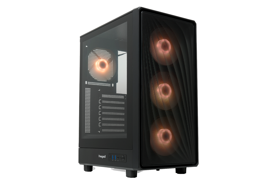Корпус без блока питания/ Case HSPD M510, Mesh Mid Tower, Black, TG, 0.5 SPCC, 4x120mm ARGB (Orbis F1) ATX, mATX, mITX 180/280/160mm 1x2.5", 1x3.5", 7xPCI 2xUSB-A 3.0 517x277x418mm