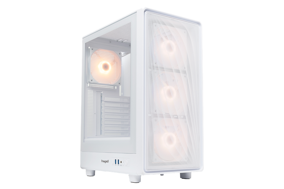 Корпус без блока питания/ Case HSPD M510, Mesh Mid Tower, White, TG, 0.5 SPCC, 4x120mm ARGB (Orbis F1) ATX, mATX, mITX 180/280/160mm 1x2.5", 1x3.5", 7xPCI 2xUSB-A 3.0 517x277x418mm