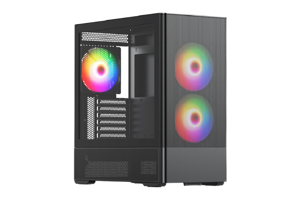 Корпус без блока питания/ Case HSPD M712, Mesh Mid Tower, Black, TG, 0.6 SPCC, 3x140mm ARGB, E-ATX, ATX, mATX, mITX, 175/410/160mm, 2x2.5", 2x3.5", 7xPCI, 2xUSB-A 3.0, 476x225x455mm