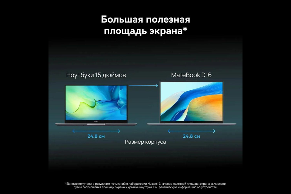 Ноутбук Huawei MateBook D 16 MCLG-X Core i5 13420H 8Gb SSD512Gb Intel UHD Graphics 16" IPS (1920x1200) FreeDOS grey space WiFi BT Cam (53014CNB)