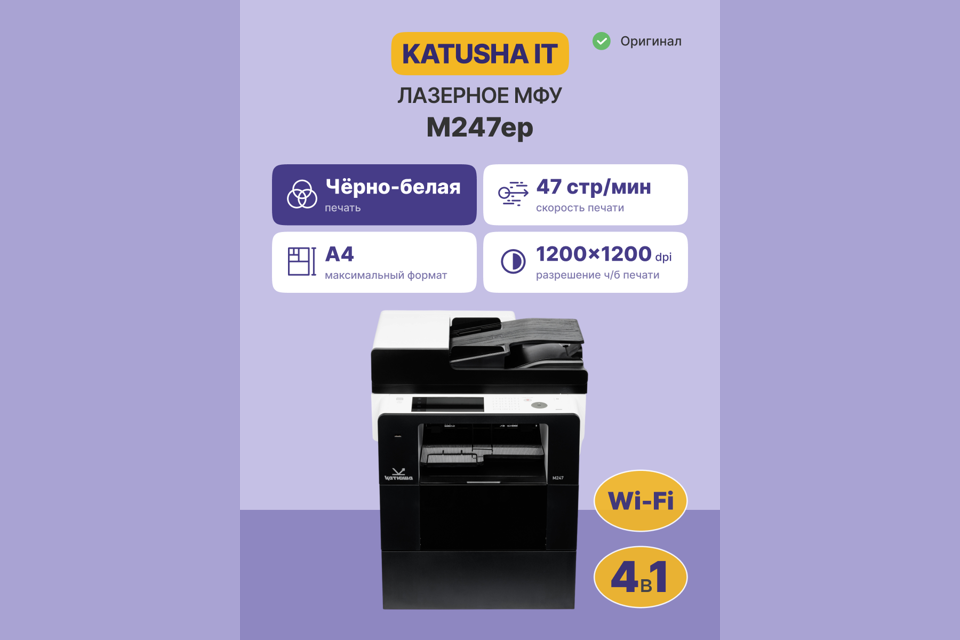 Мфу лазерное МФУ Катюша M247ep принтер/копир/сканер/факс, А4+ Ч/Б, 47 стр/мин, российская сборка